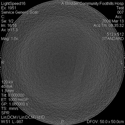 2. Perform artifact evaluation using ACR CT QC manual<https://urldefense.com/v3/__https:/www.acr.org/Clinical-Resources/Clinical-Tools-and-Reference/Specialties/Medical-Physics-Resources__;!!KGKeukY!1_cZvcWoFXPo6GIt5QbdTx3q5w7z1viB6JqJitALJLFU0p1VxDrNOh7TkddRDIK5omcY84u7R2grKKZsQRMt7g5JDMLeg0utirfBKWAMvXQ2$> method to determine if there are potentially clinically significant artifacts over the phantom FOV (if artifacts are seen, use clinical image significance evaluation method below)