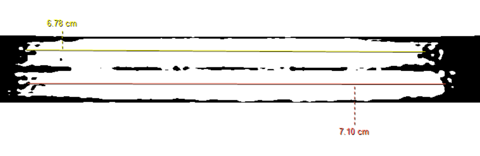 I'm having difficulty with the slice thickness ramps on an ACR phantom scan on a Siemens Magnetom Lumina scanner. (3T) The following is an image of the slice thickness ramps with the window set as described in the scanning instructions on the ACR T2 sequence. What a mess!